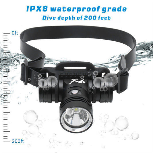 1000 Lumens IPX8 200Ft Waterproof Rechargeable Diving Headlamp